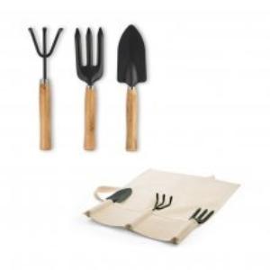 Conjunto de jardinagem com 3 ferramentas em metal e madeira de eucalipto