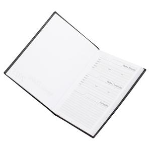 Descrição: Agenda diária 2025 de couro sintético. Contém fita de cetim marca página, dados pessoais, calendário de 2024 à 2026, mapa do Brasil, mapa-múndi, índice telefônico e planejamento.