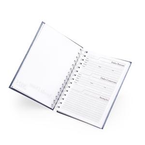 Descrição: Agenda diária 2025 metalizada em Percalux com wire-o metálico. Possui "bolso" plástico atrás da capa, páginas de dados pessoais, calendário 2024 a 2026, mapa do Brasil, mapa-múndi, índice telefônico e planejamento.