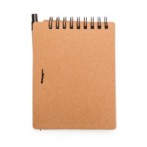 Descrição: Bloco de anotações ecológico com caneta de papelão. Possui detalhe “smile” na capa frontal(verso liso), caneta ecológica com acabamentos em plástico acionada por clique, primeira folha(branca) com cinco blocos autoadesivos coloridos com aproxim