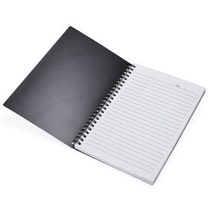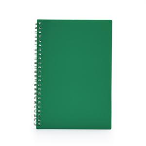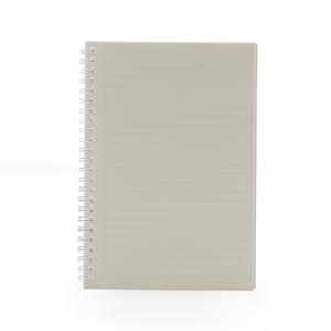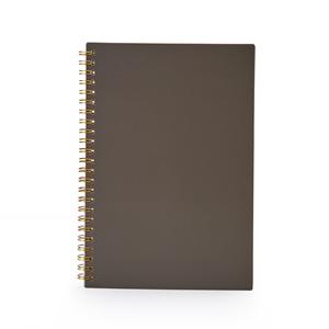 Descrição: Caderno A5 plástico com wire-o metálico. Capa em PP, contém aproximadamente 80 folhas brancas com pauta.