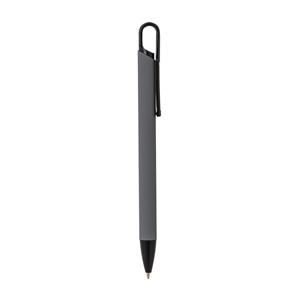 Descrição: Caneta metálica com acabamento similar à borracha, carga esferográfica azul 1.0mm e acionamento por clique.