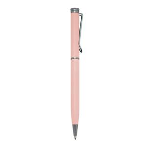 Descrição: Caneta metálica com carga esferográfica azul e acionamento por rotação.