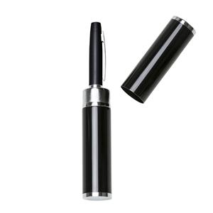 Descrição: Caneta metal com estojo tubo. Caneta inteira colorida com detalhes prata, possui dois anéis em relevo na parte superior e aciona por giro. Estojo tubo de alumínio revestido com espuma interna.Medidas aproximadas para gravação (CxL): Tubo 7