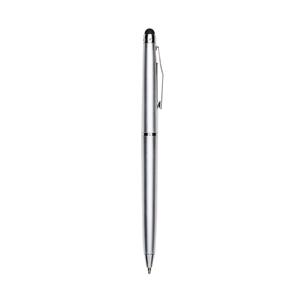 Descrição: Caneta plástica touch screen com acionamento por rotação e carga esferográfica azul 1mm.
