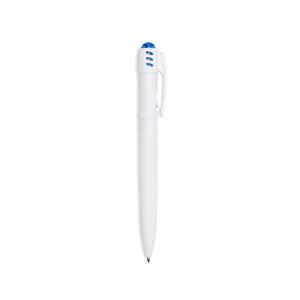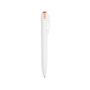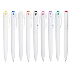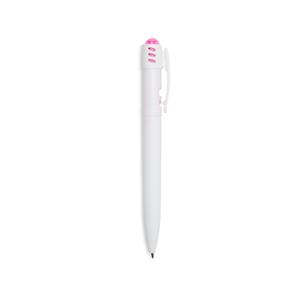 Descrição: Caneta plástica com carga esferográfica azul e acionamento por clique.