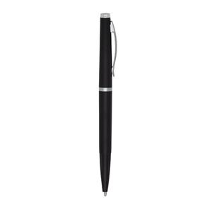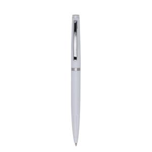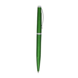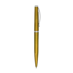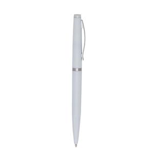 Descrição: Caneta plástica com carga esferográfica azul e acionamento por rotação.