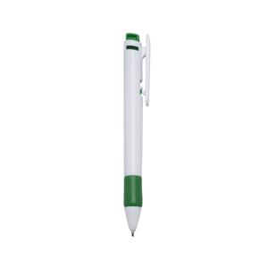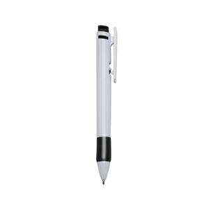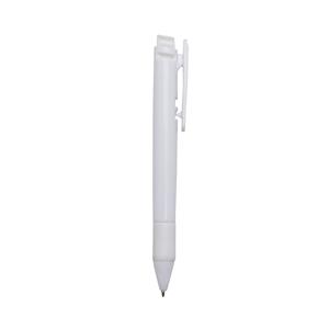Descrição: Caneta plástica com carga esferográfica azul e acionamento por clique.