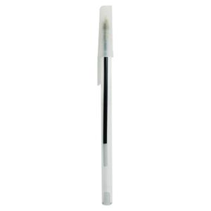 Descrição: Caneta plástica com tampa. Carga esferográfica azul.