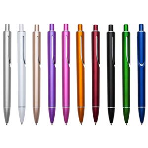 Descrição: Caneta plástica com carga esferográfica azul e acionamento por clique.