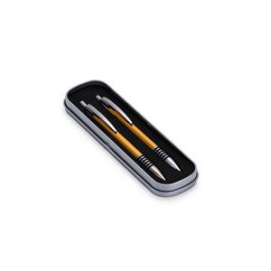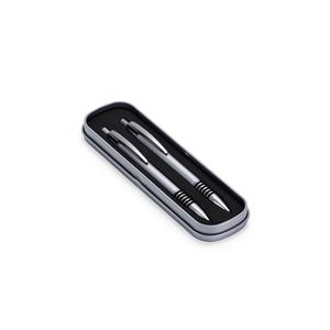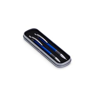 Descrição: Com este conjunto de caneta e lapiseira metálicas, escrever será uma experiência ainda mais sofisticada e elegante. O estojo em metal que as acomoda, possui revestimento em espuma para evitar riscos. A caneta possui carga esferográfica azul de