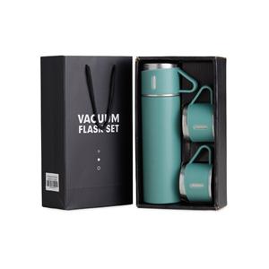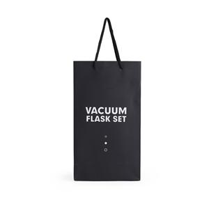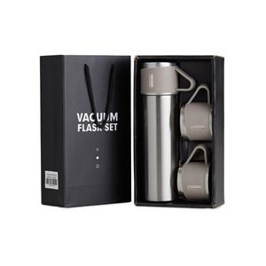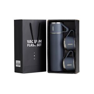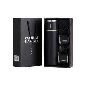 Descrição: Kit garrafa térmica 450ml com duas tampas extras que podem ser utilizadas como xícaras. Garrafa produzida em inox com base antiderrapante e tampas de inox com revestimento plástico. Acompanha sacola de papel com berço de papelão para acomodação
