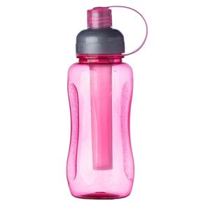 Descrição: Squeeze plástico 600ml ice bar. Squeeze colorido acinturado com detalhe retangular texturizado nas laterais, possui tampa cinza com detalhe ondulado ao redor e tampa com alça para o bico. Parte interna possui uma barra congelante(desencaixe a b
