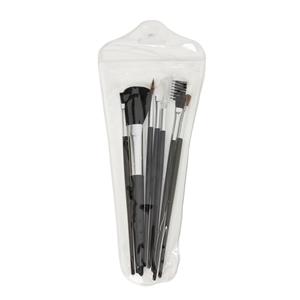 Descrição: Kit pincel com 7 peças em estojo plástico. Possui pincel para delineado, pincel aplicador de sombra, pincel para sombra, pincel para marcação, pincel para esfumar, pincel pente sobrancelha e pincel para blush.Medidas aproximadas para grava