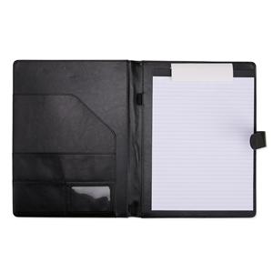 Descrição: Organização impecável com estilo profissional. Nossa pasta executiva, feita em couro sintético de alta qualidade, acompanha um bloco de aproximadamente 20 folhas pautadas removíveis para anotações, suporte para caneta, bolsos para organizar fol