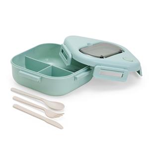 Descrição: Marmita hermética do tipo Bentô de 1,2 litros de capacidade, com 3 divisórias e 3 talheres. Feita em PP atóxico e livre de BPA, é completamente segura para armazenar alimentos. A tampa possui travas de segurança, supervedação, silicone com resp
