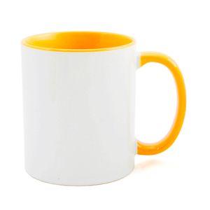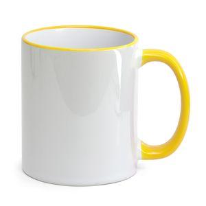 Descrição: Caneca para Sublimação de Cerâmica Branca com Alça e Borda Amarela Clara