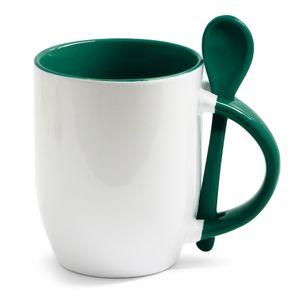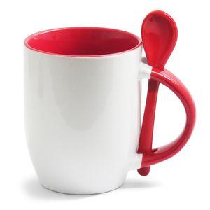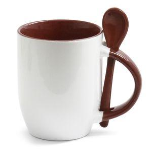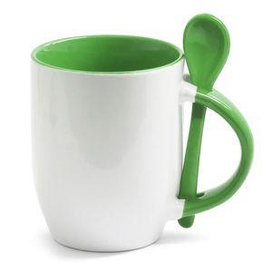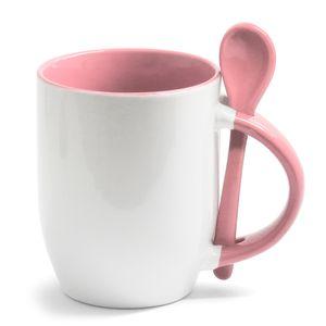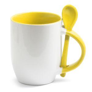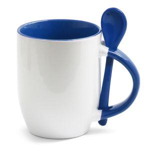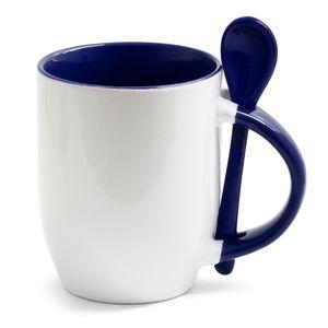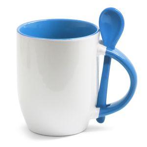 Descrição: Caneca para Sublimação de Cerâmica Branca com Alça Interior e Colher - Azul Claro
