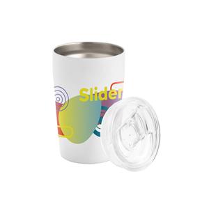 Descrição: Copo de viagem para sublimação em aço inox de parede dupla térmica, isolada a vácuo. Incluso tampa transparente com abertura deslizante. Capacidade até 380ml. Preserva as bebidas quentes por 6h e frias por 12h. Fornecido em caixa presente. Cert
