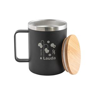 Descrição: Copo de viagem em aço inox (90% reciclado), térmico com parede dupla isolada a vácuo e tampa em bambu. Capacidade até 420 mL. Fornecido em caixa presente de papel kraft. Certificação EU Food Grade. A cor e o resultado da impressão nos materiais