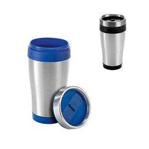 Descrição: Copo de viagem em aço inox e PP, térmico com parede dupla isolada a ar. Tampa com sistema de abertura e fecho fácil. Capacidade até 420 mL. Preserva as bebidas quentes por 2h e frias por 4h. Fornecido em caixa presente preta. Certificação EU Fo