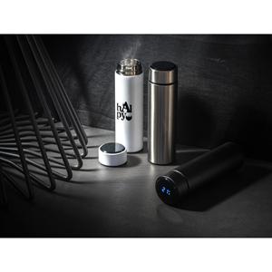 Descrição: Garrafa em aço inox de parede dupla térmica, isolada a vácuo. Tampa com termômetro digital indicando a temperatura da sua bebida.
