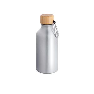 Descrição: Squeeze em alumínio 100% reciclado com cor sólida brilhante. A squeeze tem uma tampa em bambu, à prova de água, e mosquetão que facilita o transporte. Capacidade até 400 mL. Caixa branca 94656 vendida opcionalmente. Certificação EU Food Grade.