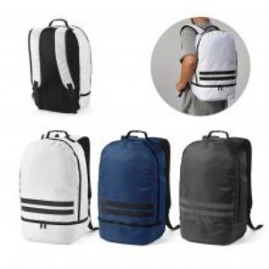 Descrição: Mochila em 290T poliéster reciclado (100% rPET), em sarja com forro em 210D poliéster reciclado (100% rPET). Contém 1 compartimento principal e 1 compartimento inferior ideal para guardar sapatos.