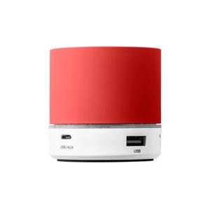 Descrição: Caixa de som com microfone em ABS e acabamento emborrachado. Transmissão por bluetooth e leitor de cartões TF. com 3W/4Ω e autonomia até 2h. Função para atender chamadas, controle de volume e conexão à playlist do dispositivo móvel. Incluso cab