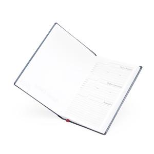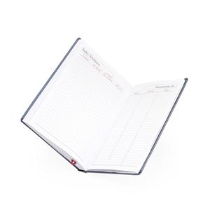 Descrição: Agenda diária 2025 de couro sintético. Contém fita de cetim marca página, dados pessoais, calendário de 2024 à 2026, mapa do Brasil, mapa-múndi, índice telefônico e planejamento.