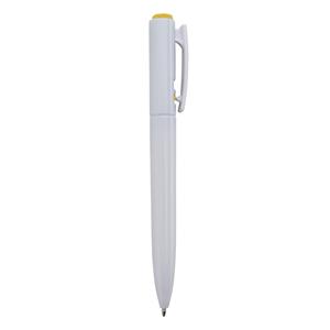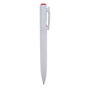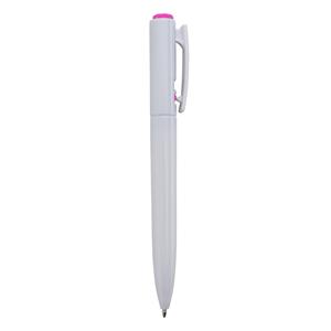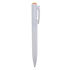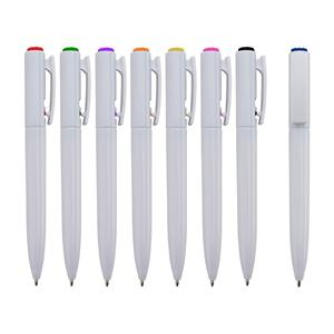 Descrição: Caneta plástica com carga esferográfica azul e acionamento por clique.