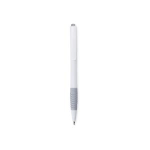 Descrição: Caneta plástica com detalhe emborrachado e acionamento por clique, carga esferográfica azul 0.8mm.