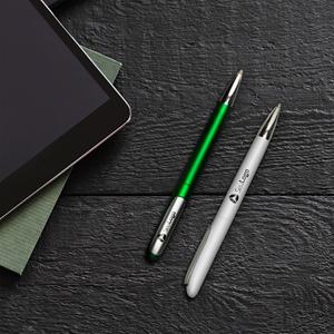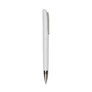 Descrição: Caneta plástica com carga esferográfica azul e acionamento por clique no clipe.