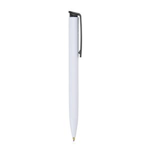 Descrição: Caneta plástica com carga esferográfica azul e acionamento por clique.