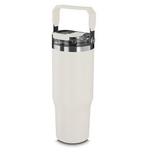 Descrição: Praticidade e estilo em cada gole, mantendo suas bebidas na temperatura ideal com a garrafa térmica de aço inox e parede dupla, com capacidade de até 900ml. A tampa rosqueável com alça de plástico é prática para transporte, e o anel de silicone