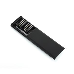 Descrição: Kit ferramenta com 25 peças em estojo plástico com tampa de encaixe. Contém: 1 chave extensora rotatória para conexão das ponteiras, 1 ponteira Tri-Wing, 5 ponteiras Phillips, 4 ponteiras fenda, 10 ponteiras Torx, 2 ponteira Allen, 1 ponteira s