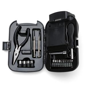 Descrição: Kit ferramenta 19 peças de maleta plástica com lanterna. Necessário 4 pilhas AA para utilizar lanterna, possui botão para ligar/desligar lanterna na alça e trava lateral no estojo. Contém: conjunto 10 pontas(4 chaves phillips, 2 chaves fenda, 3