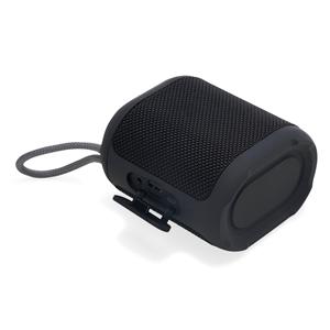 Descrição: Caixa de som multimídia. Material plástico resistente a água, e falantes com acabamento em tecido, possui um cordão de nylon acoplado para facilitar o transporte. A caixinha funciona nos modos Bluetooth, Radio FM, Cartão TF (Micro SD), Auxiliar